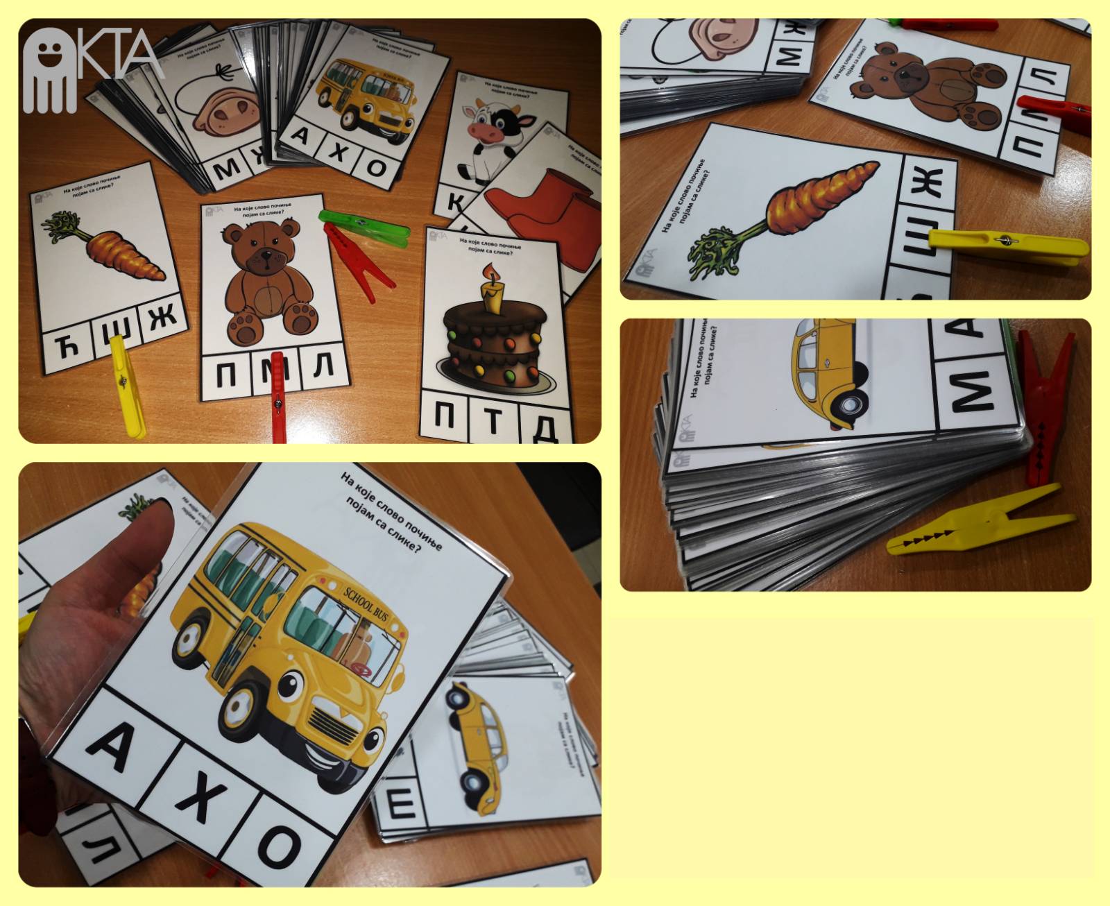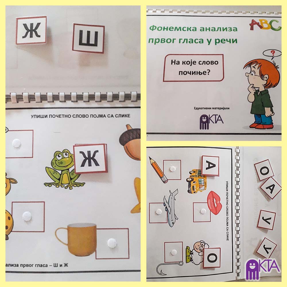 Usvajanje fonemske analize prvog glasa – određivanje početnog slova u rečima, vežbe auditivne dikriminacije slova. Opširnije