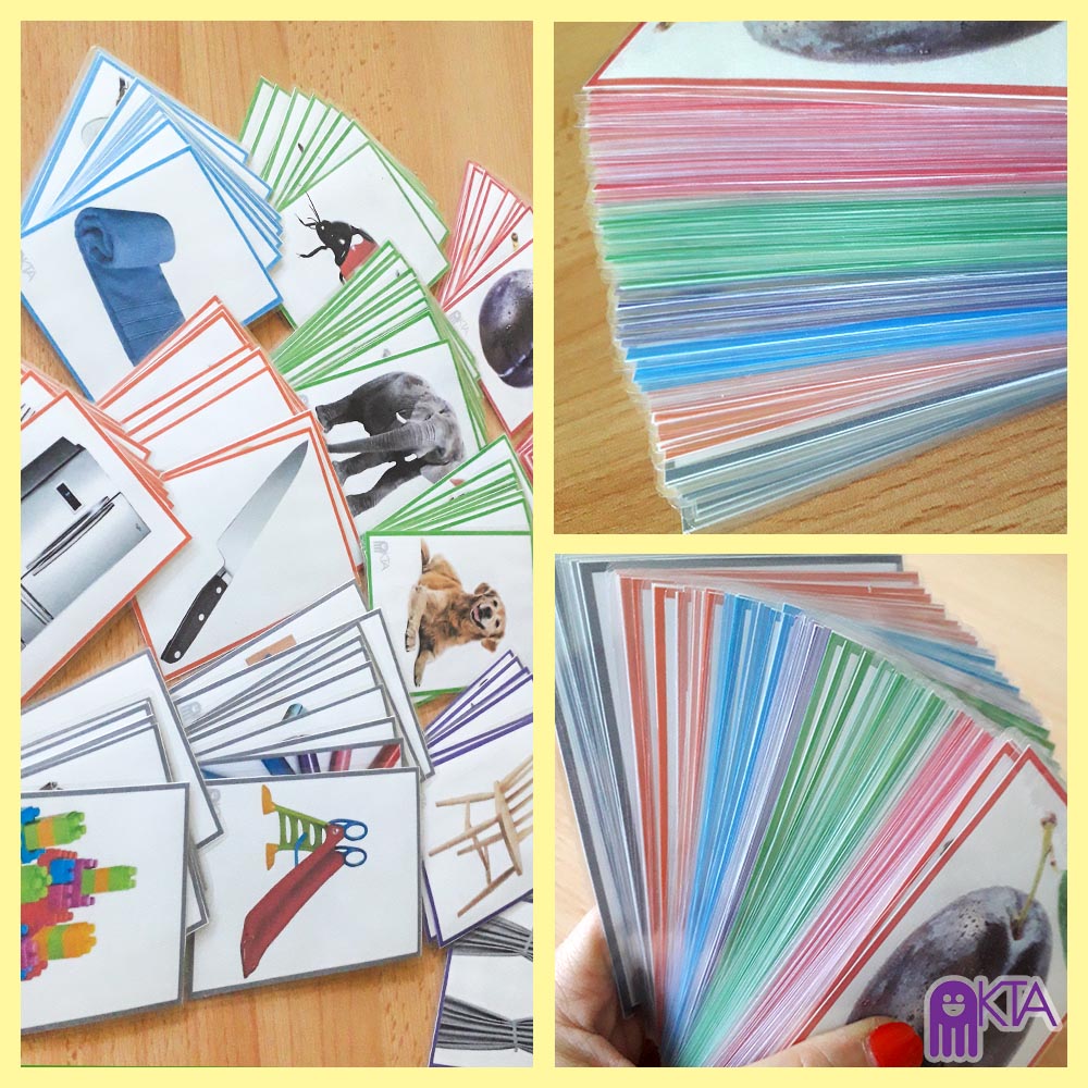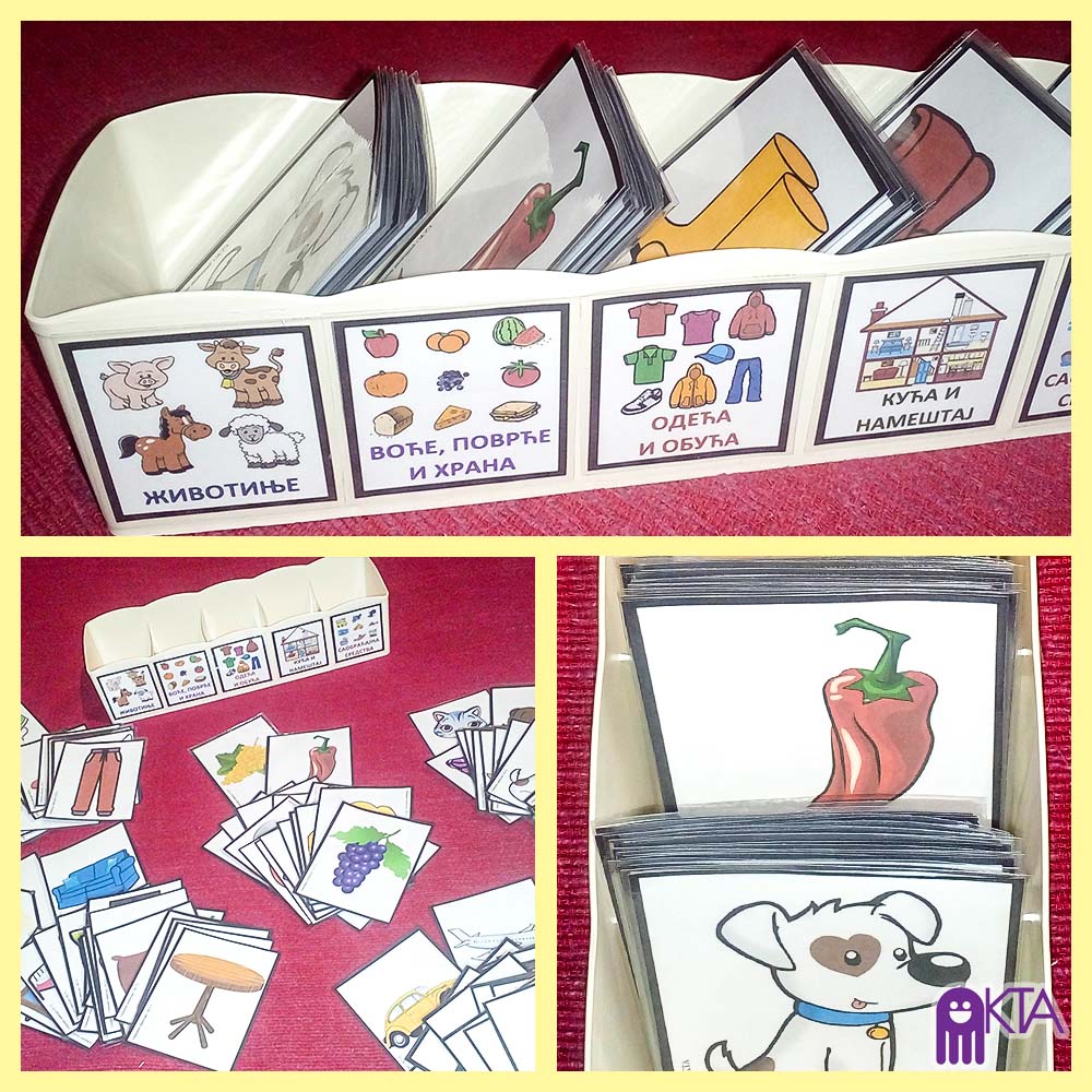 Plastificirane kartice, 200 kom, pojmovi iz okruženja razvrstani i obeleženi po kategorijama