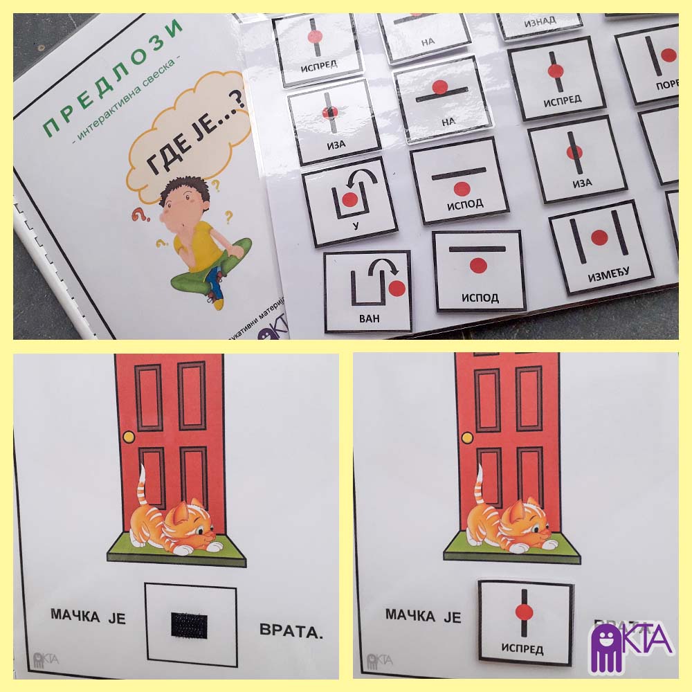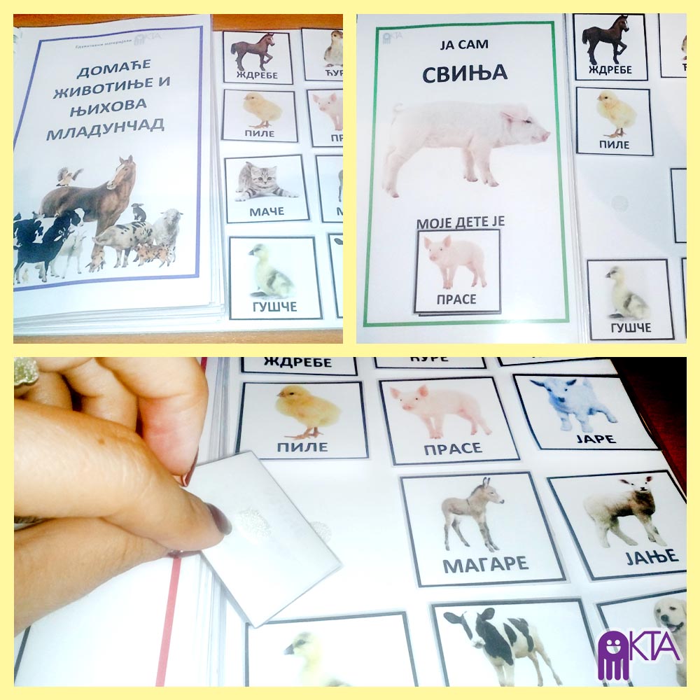 Interaktivna sveska, 12 plastificiranih strana i 12 plastificiranih kartica sa čičak trakom.