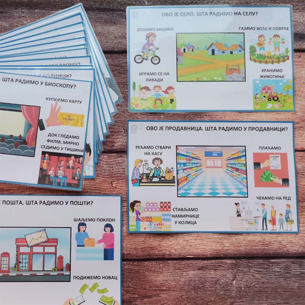 Plastificirane kartice, 60 kom, različite oblasti (aktivnosti brige o sebi, aktivnosti svakodnevnog života, sportske aktivnosti, aktivnosti slobodnog vremena..)