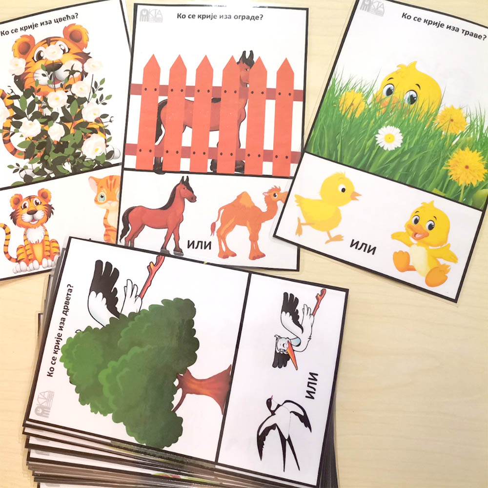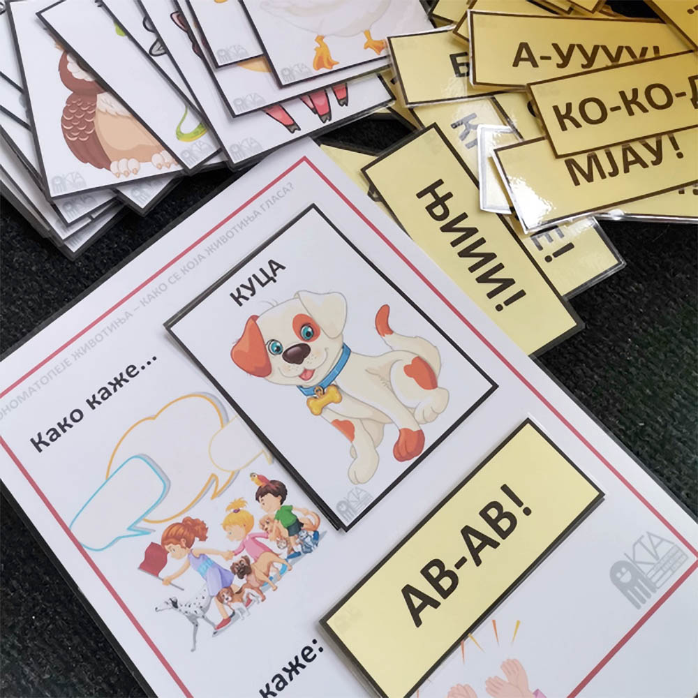 1 šablon A4 formata, 20 kartica - životinje, 20 kartica - zvukovi
