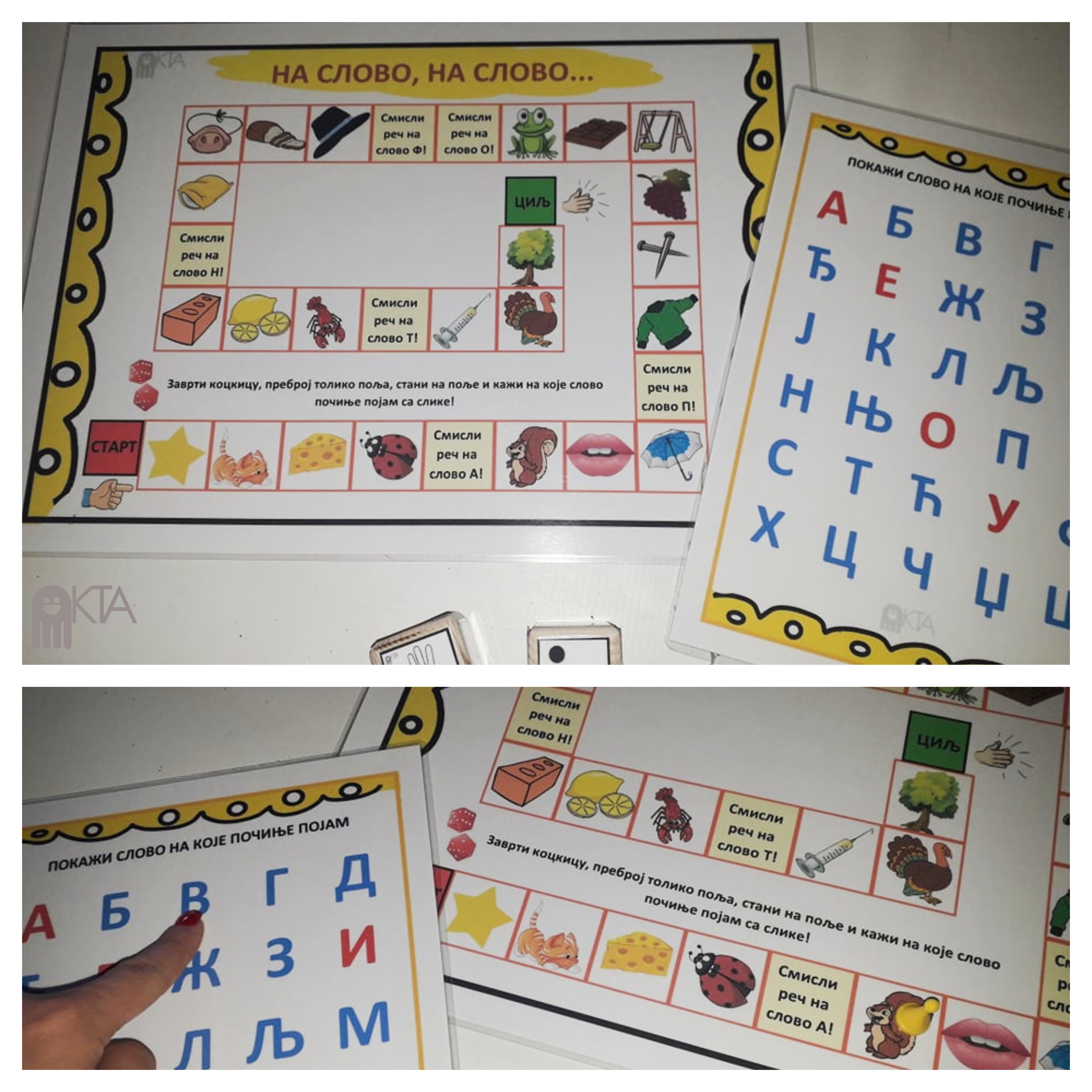 Razvoj timske igre, praćenje redosleda igranja, razvoj fonemske analize prvog glasa u reči, usvajanje znanja o slovima. Opširnije