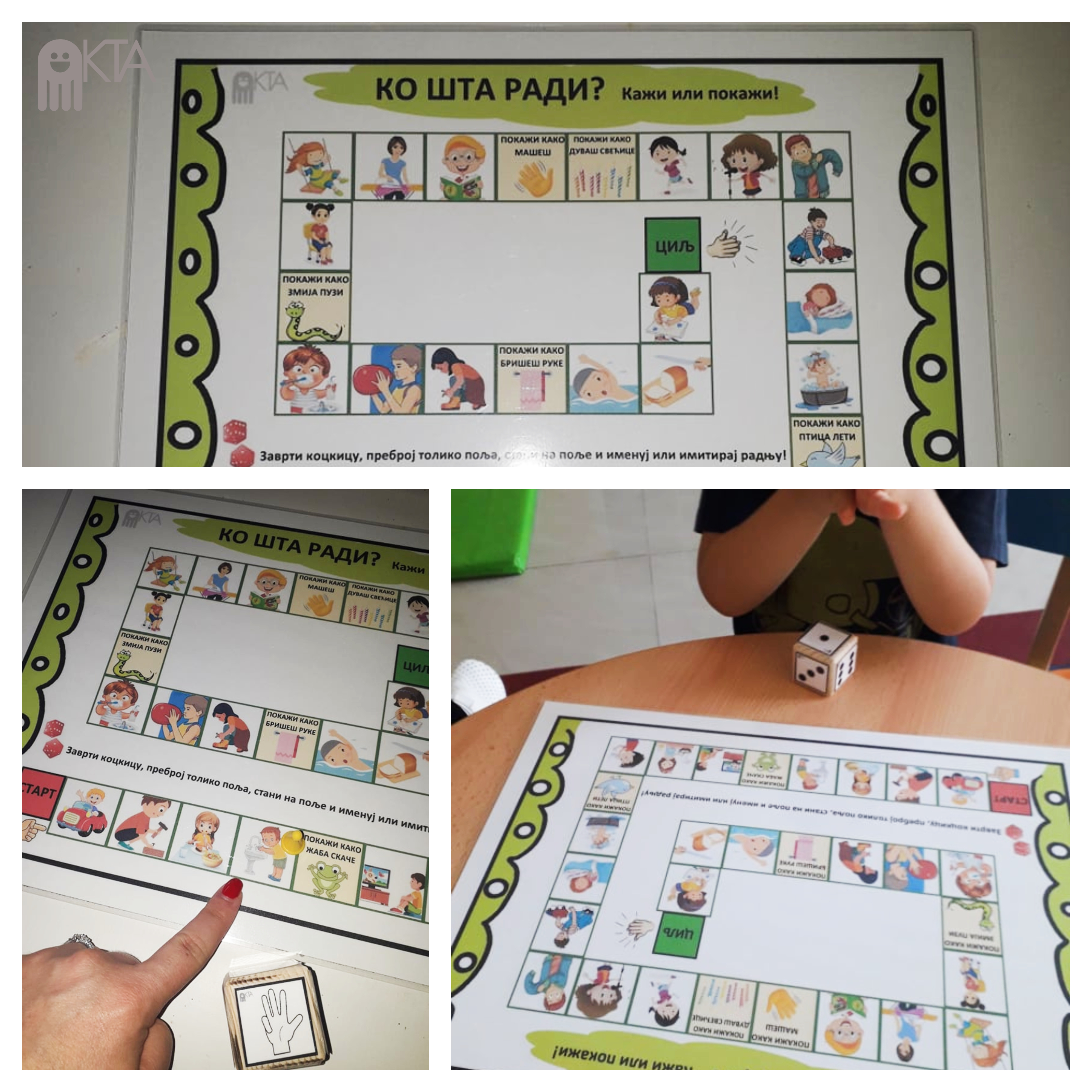 Razvoj timske igre, praćenje redosleda igranja, stimulacija receptivnog i ekspresivnog govora, bogaćenje rečnika, razvoj pokaznog gesta, usvajanje klasifikacije predmeta iz okruženja. Opširnije
