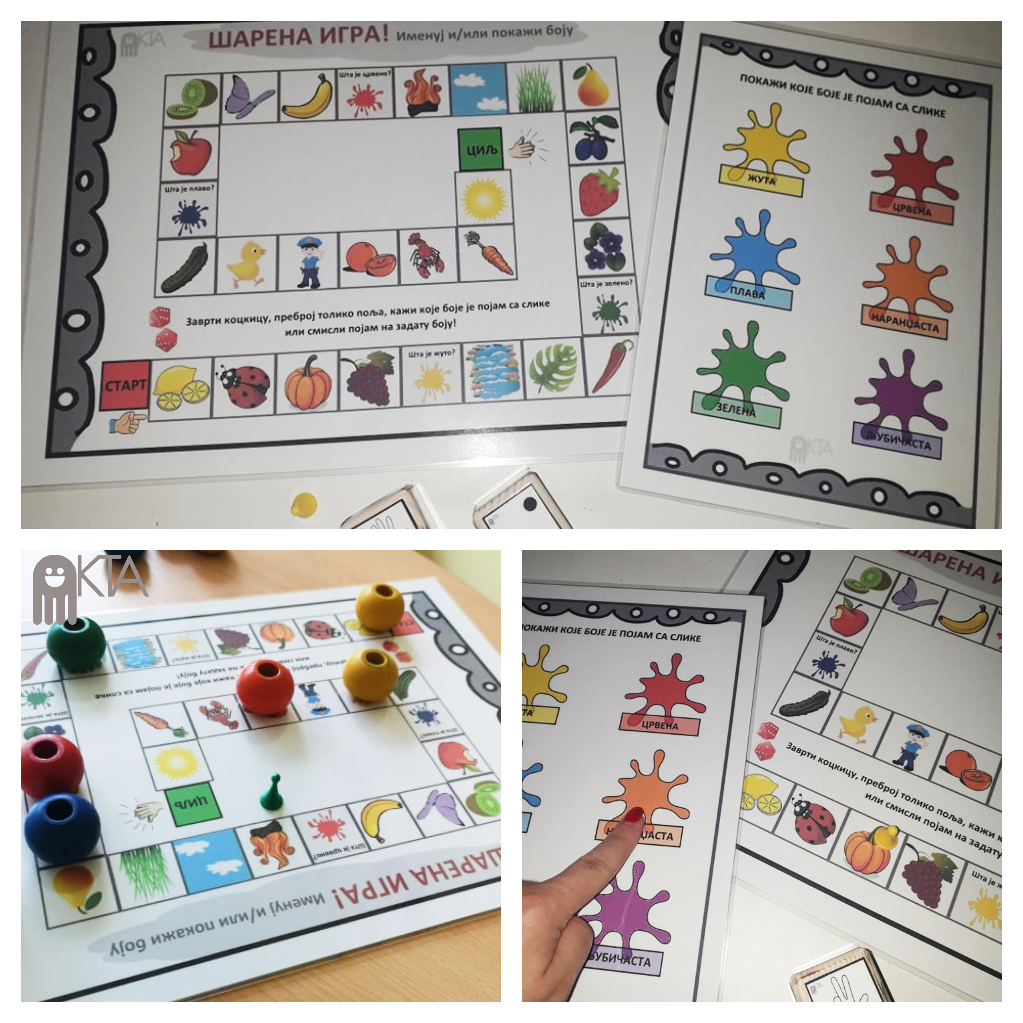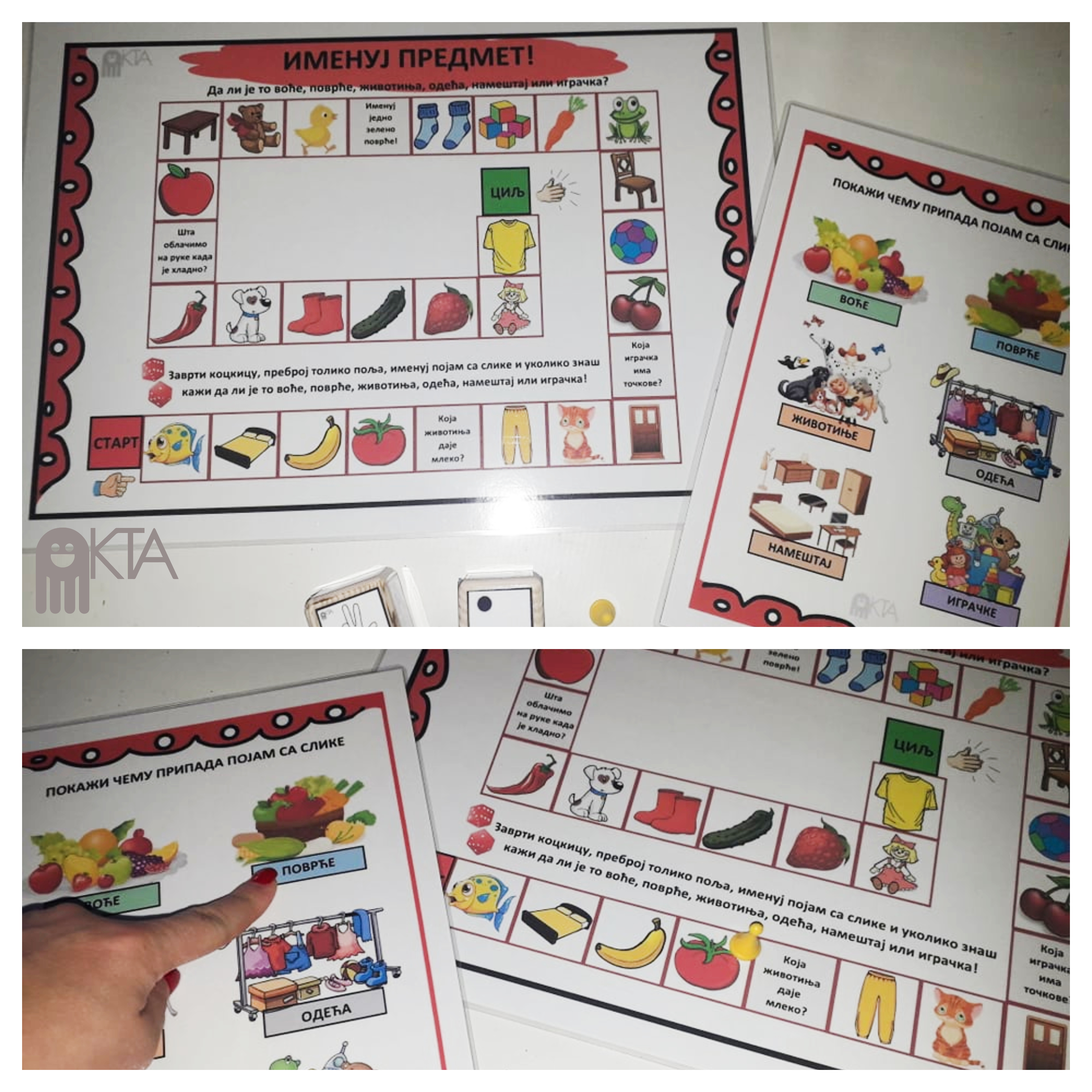 Razvoj timske igre, praćenje redosleda igranja, usvajanja znanja o bojama i predmetima iz okruženja, razvoj pokaznog gesta, bogaćenje pasivnog i aktivnog rečnika. Opširnije