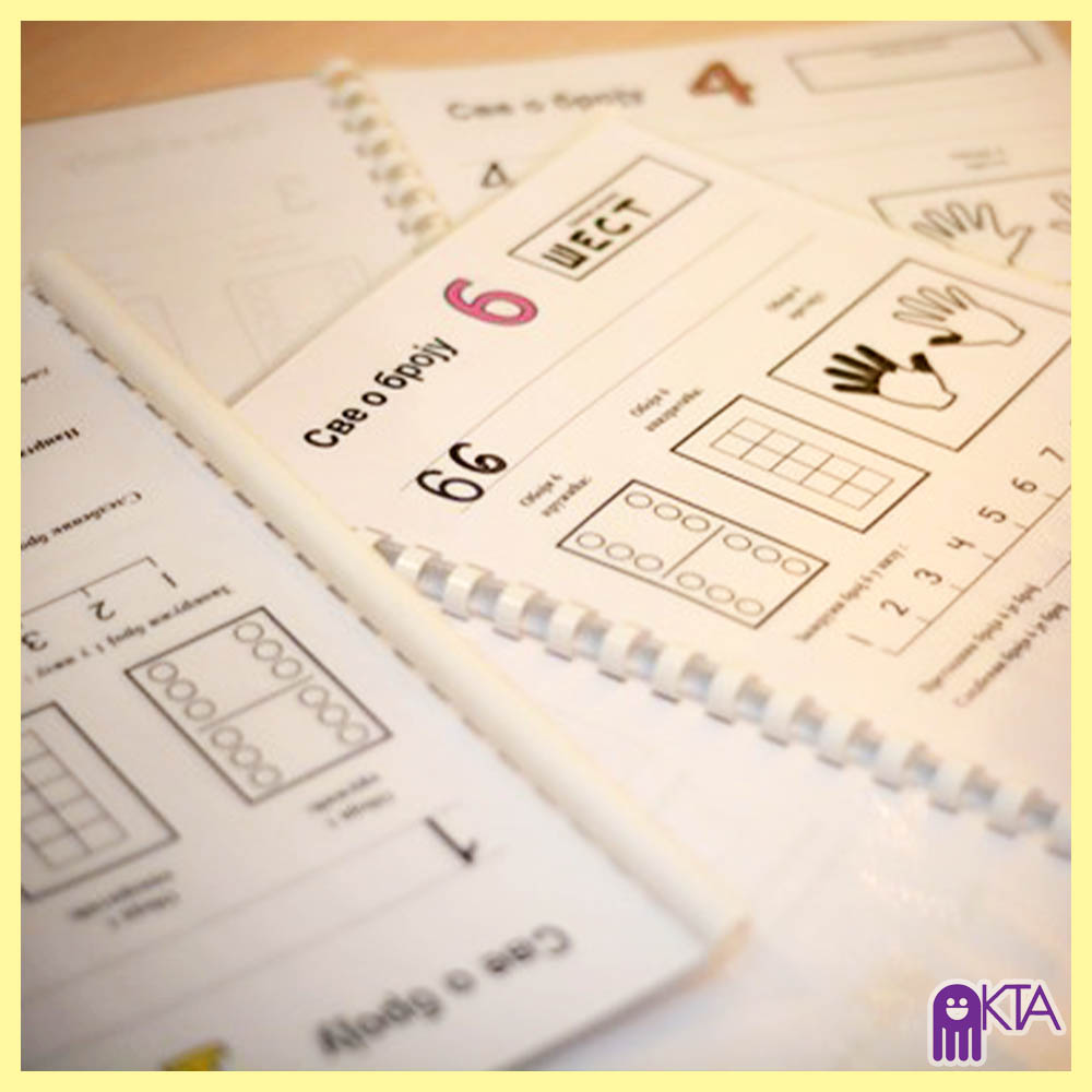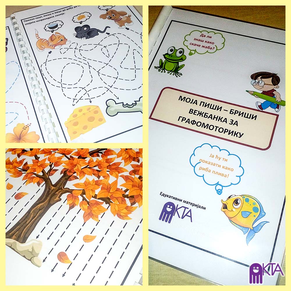 Piši briši sveska, 16 strana sa zadacima, stepenovanih po broju i složenosti stimulusa.