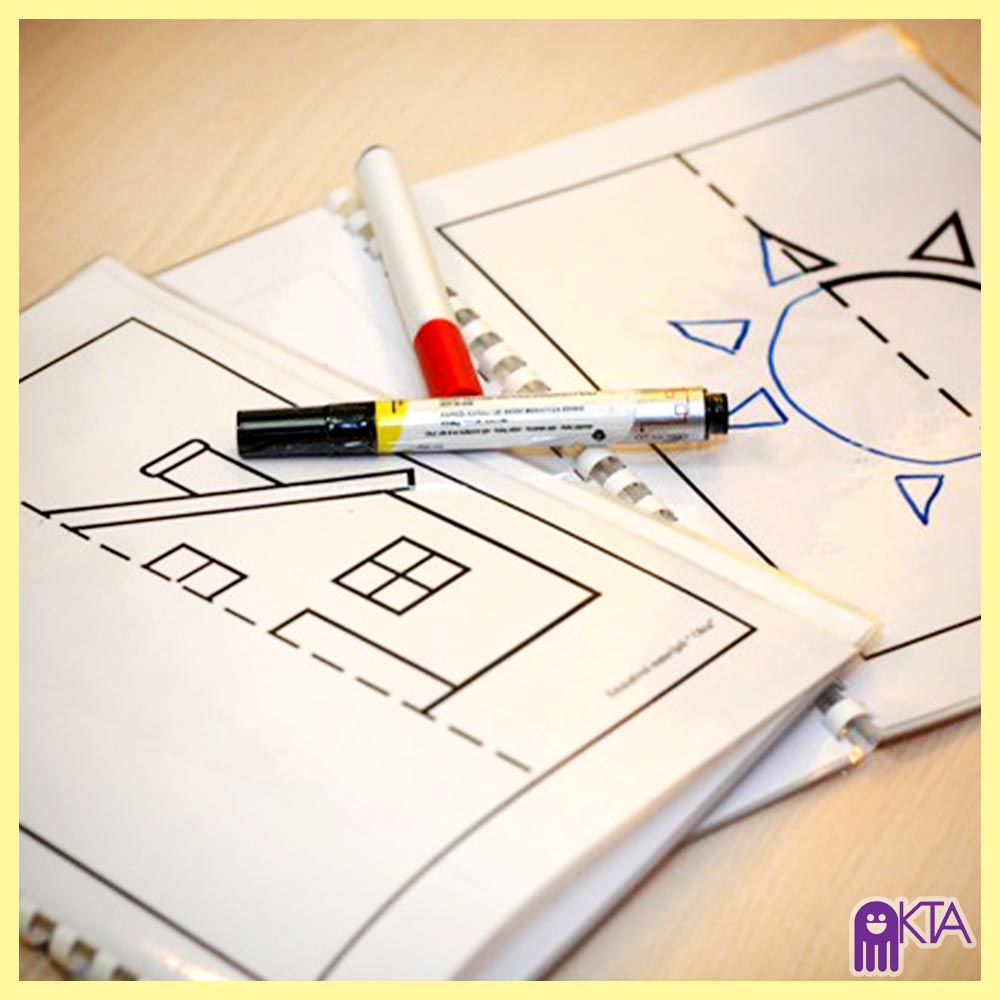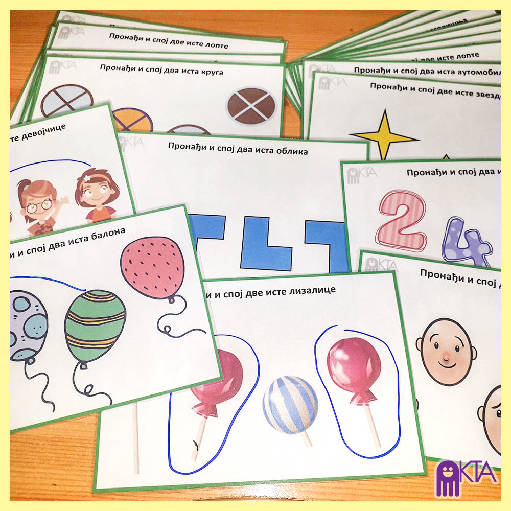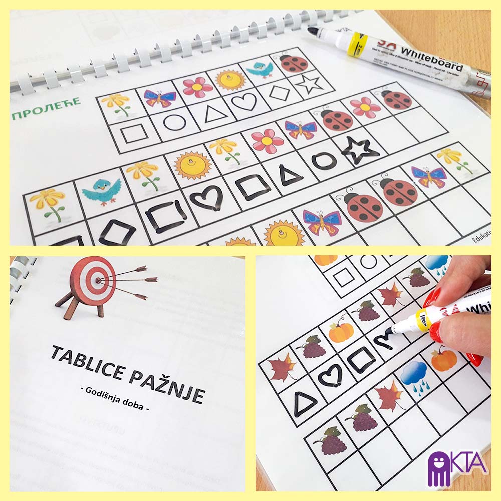 4 šablona A4 formata ojačana lepenkom, piši briši sveska - 16 strana sa zadacima, stepenovanih po broju i složenosti stimulusa.