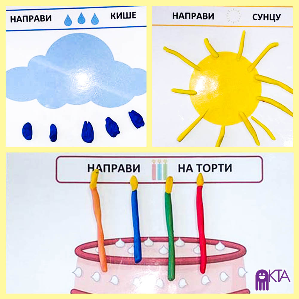 Praćenje vizuelnog niza, usvajanje pojma broja, bogaćenje pasivnog i aktivnog rečnika, razvoj pažnje, vežbe fine motorike, koordinacija oko-ruka, podsticanje aktivnosti svakodnevnog života – pravljenje pizze. Opširnije