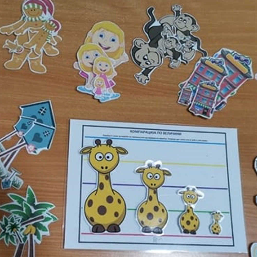 Usvajanje boja, bogaćenje pasivnog i aktivnog rečnika, razvoj sposobnosti sortiranja, razvoj sposobnosti opažanja pojava i predmeta u okruženju. Opširnije