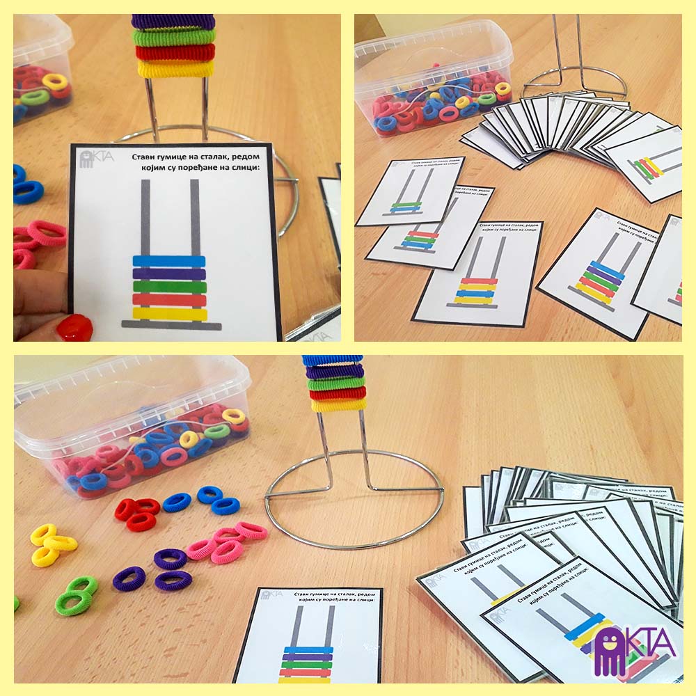 Praćenje niza, razvoj pažnje, koordinacija oko-ruka, razvoj fine motorike. Opširnije