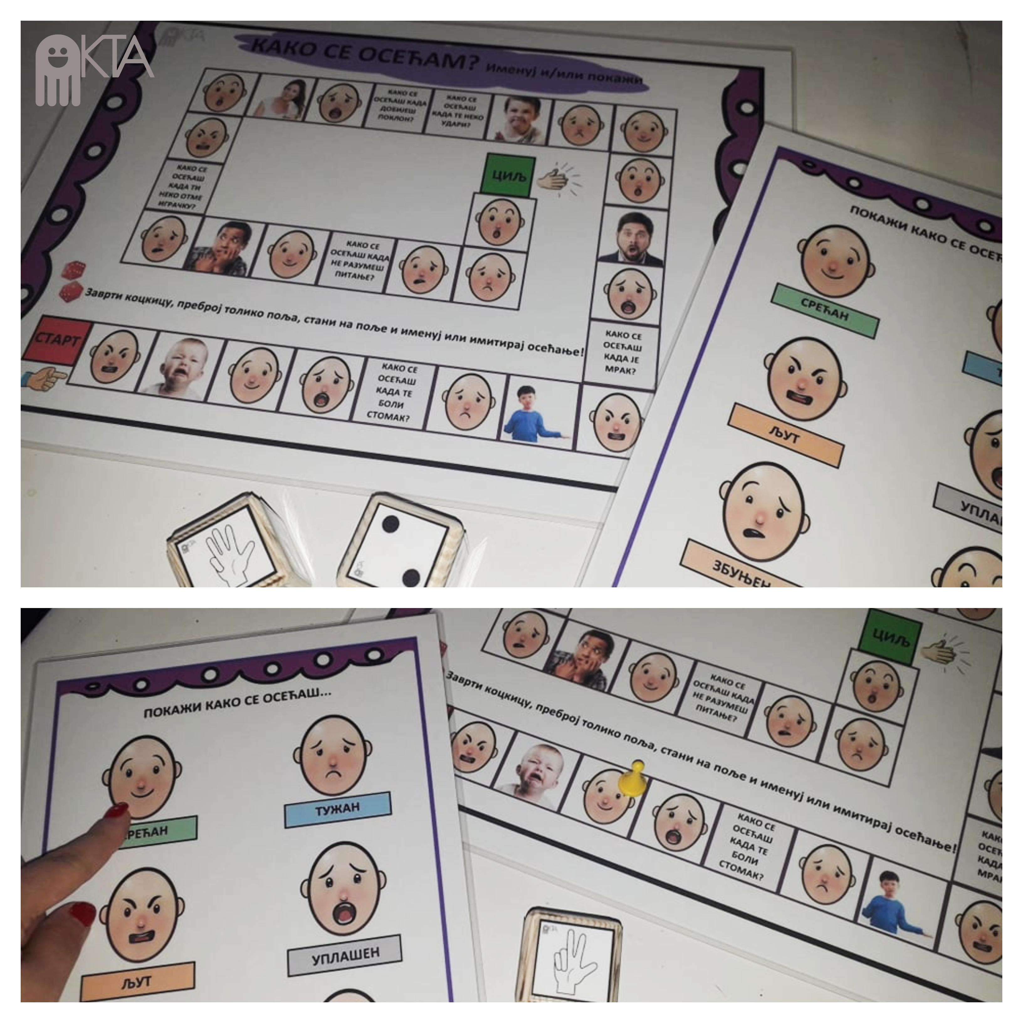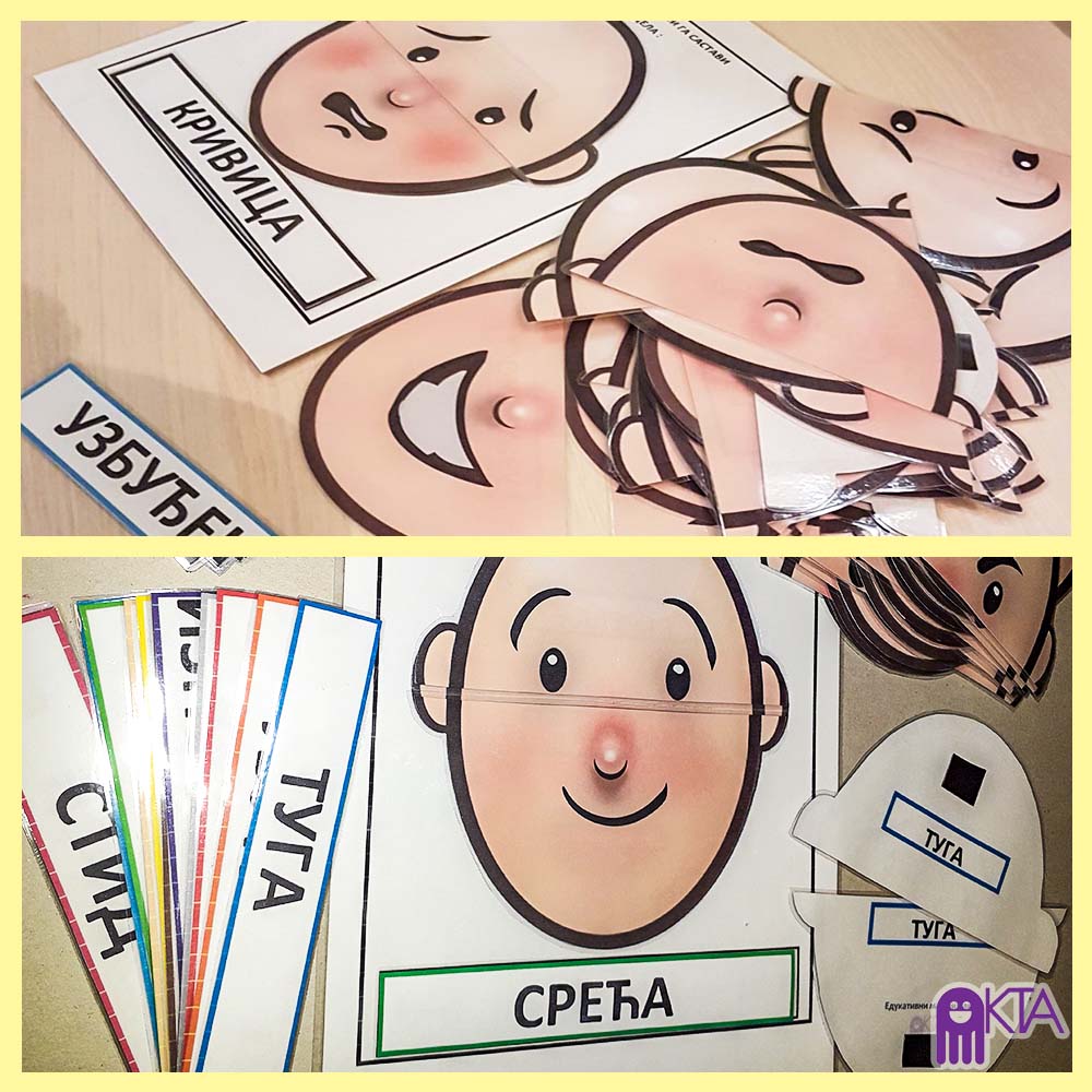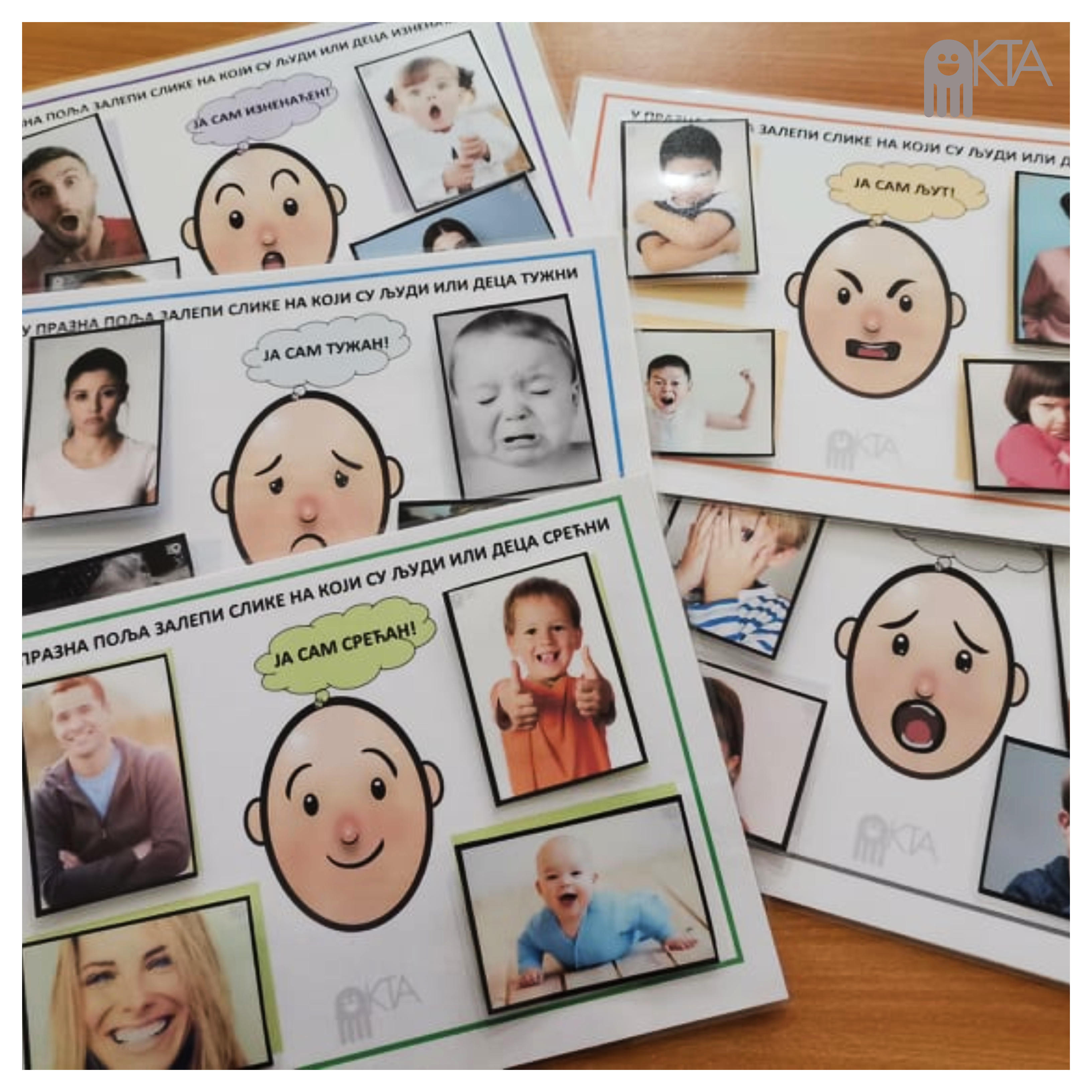 Razvoj emocionalne inteligencije, prepoznavanje osnovnih emocija na realnim slikama. Karte obuhvataju 5 emocija (sreća, tuga, ljutnja, uplašenost, iznenađenost). Opširnije