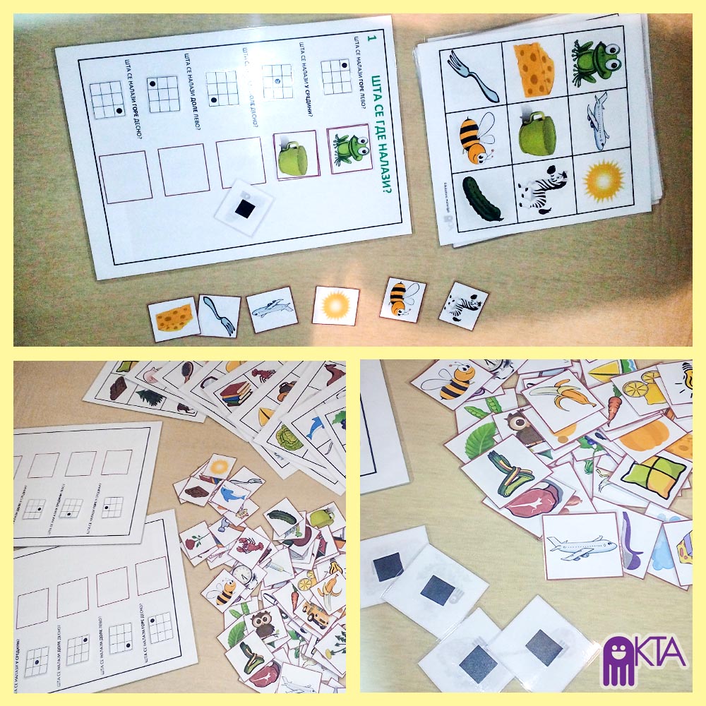 Razvoj prostorne orijentacije u dvodimenzionalnom prostoru, praćenje zadatog niza i kretanje po poljima, usvajanje pojmova gore, dole, levo, desno. Opširnije